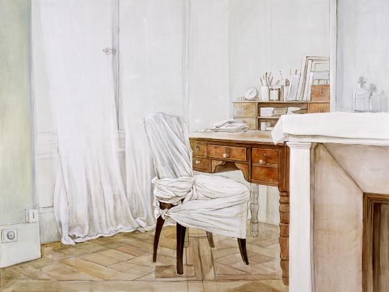 작가 서금앵의 작품 속 이야기들은 특별해 보이지 않는 일상적인 공간에 시선이 머물고 주체가 머물렀던 그 공간을 누군가 멀리서 또는 가까이서 바라봄으로 시작된다. 작가는 형태를 스케치할 때 물체의 위치를 수정하면 그전의 형태가 어렴풋이 남게 되는 것처럼, 캔버스 위에 선으로 그려진 형태와 면으로 그려진 형태를 조금 어긋나게 함으로써 공간 속 물체가 부유하는 듯한 효과를 통해 현실의 공간에서 벗어나 사유하는 공간으로 우리를 이끈다.