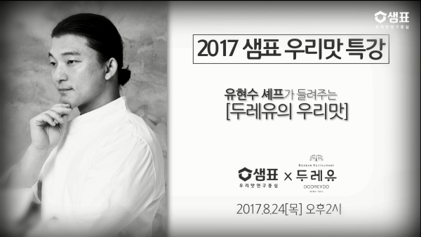 영상보기 강의 내용 두레유의 우리맛 강의 일자 2017년 8월 24일(목) 강의 장소 샘표 본사 10층 강사 유현수 셰프 목록 댓글 댓글등록 / 500 이미지 첨부 이미지 삭제 등록 총 0건의 댓글이 있습니다. 등록된 댓글이 없습니다.