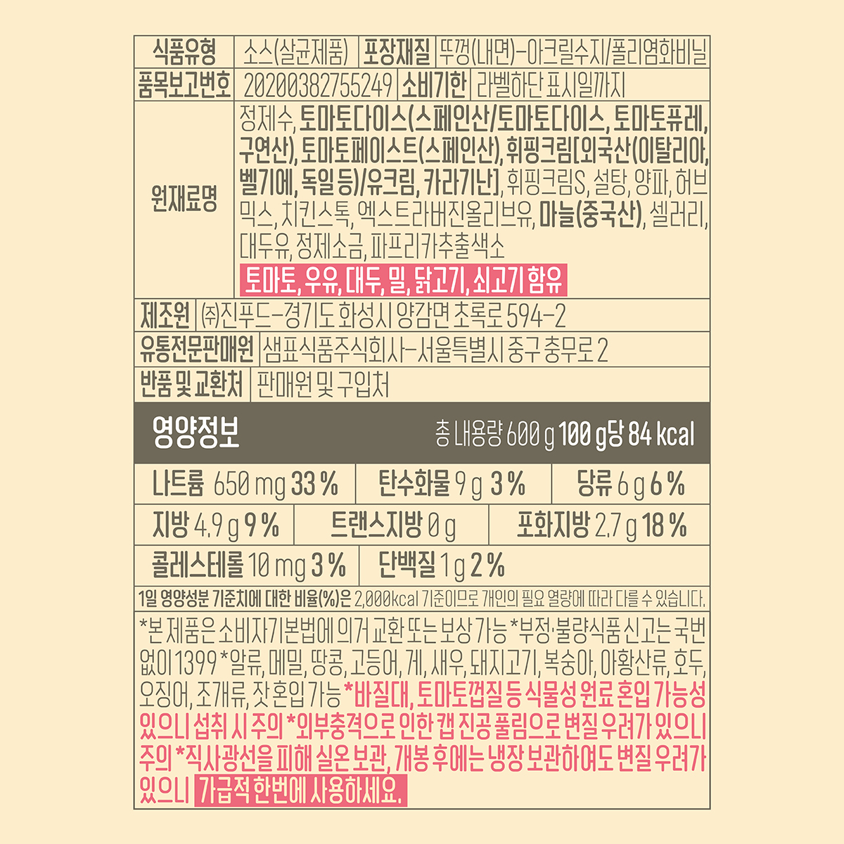 - 롬바르디아 생크림&갈릭 로제 파스타소스 ( 600g )