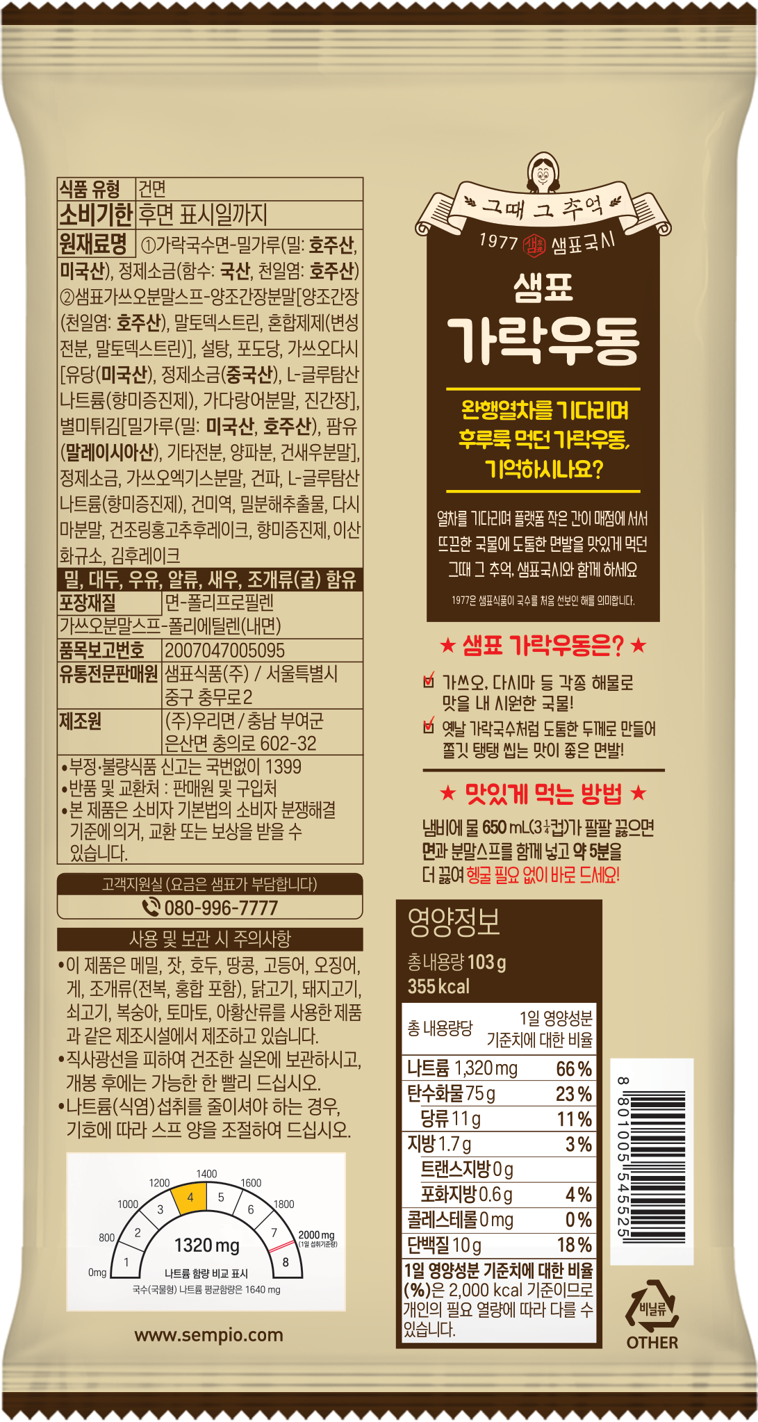 - 샘표 가락우동 ( 103g )