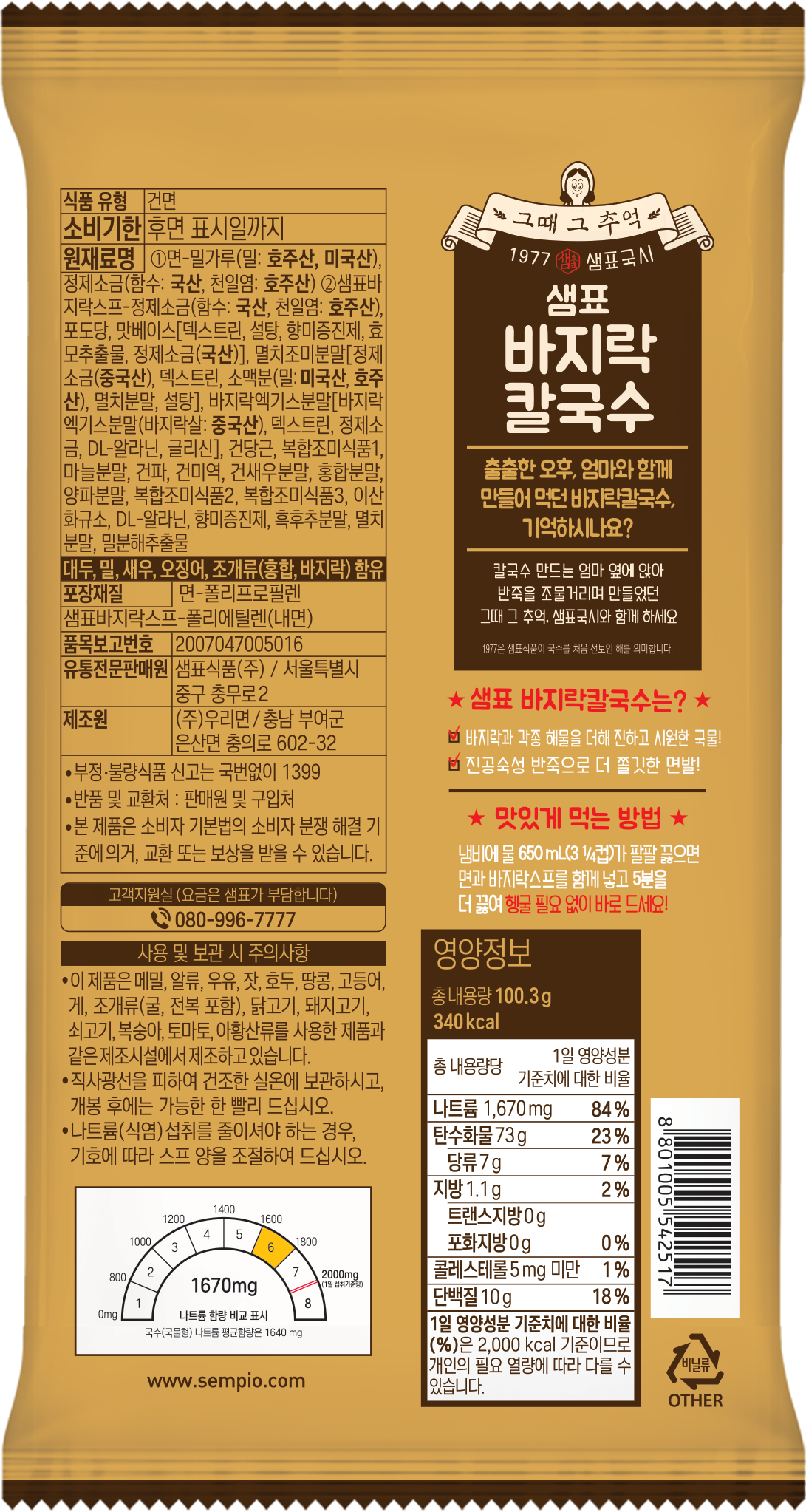 - 샘표 바지락칼국수 ( 100.3g )