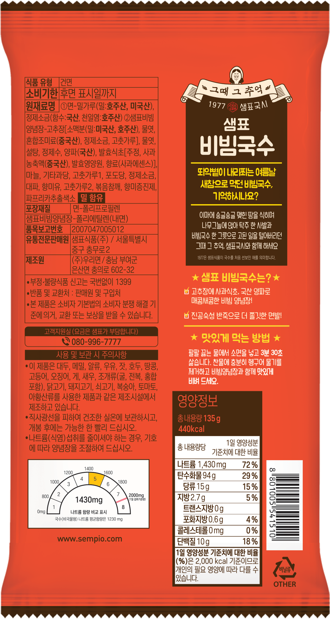 - 구매자 사정으로 교환이나 환불을 할 경우 왕복 배송료 5,000원은 구매자 부담이며, 제품에 이상이 있거나 잘못 배송이 된 경우에는 왕복 배송료를 샘표에서 부담합니다.