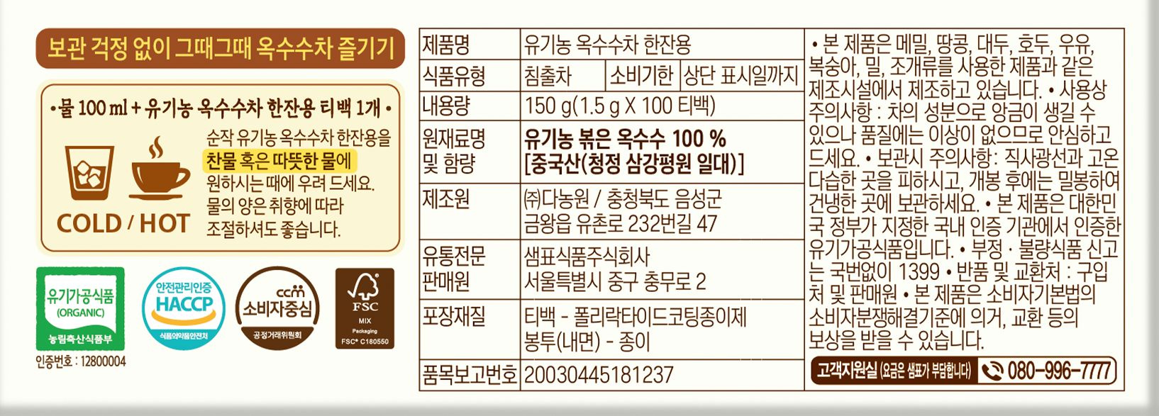 - 순작 유기농 한잔 옥수수차 티백 ( 150g )