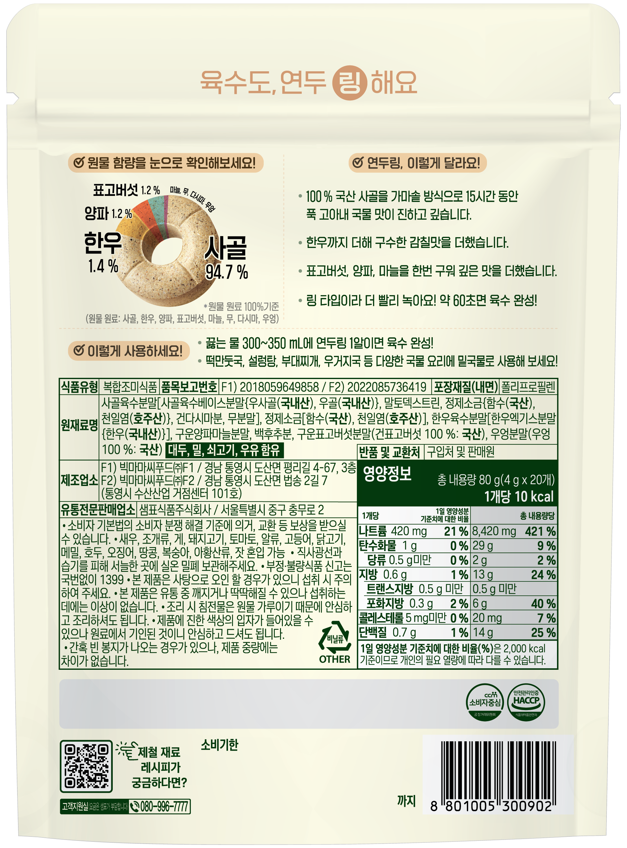 - 구매자 사정으로 교환이나 환불을 할 경우 왕복 배송료 5,000원은 구매자 부담이며, 제품에 이상이 있거나 잘못 배송이 된 경우에는 왕복 배송료를 샘표에서 부담합니다.