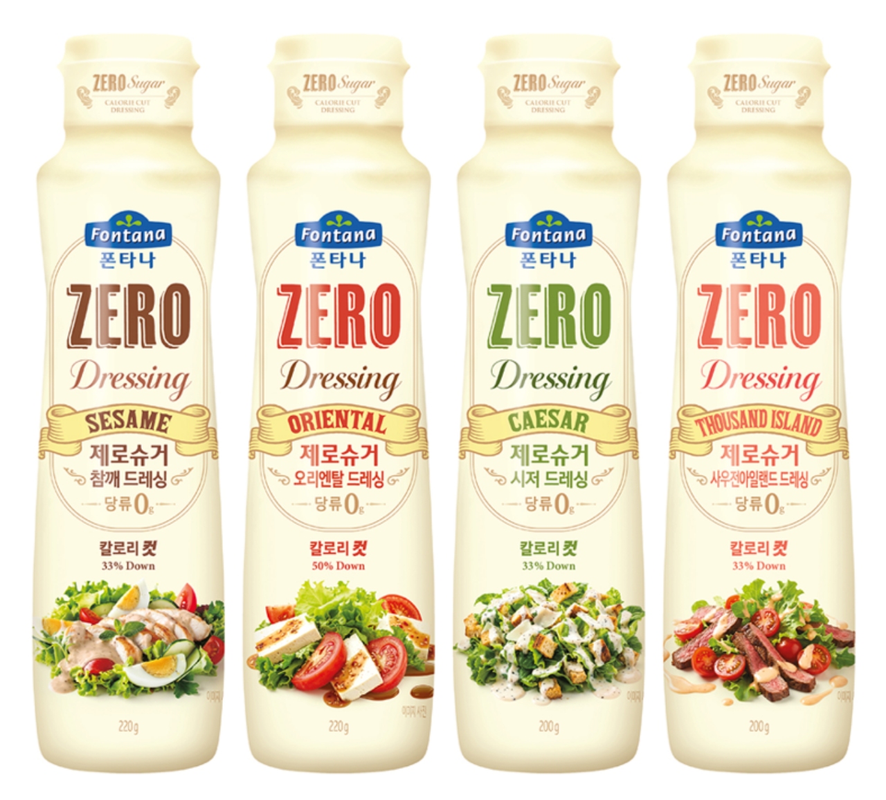 유럽 정통 프리미엄 브랜드 폰타나가 당류는 0g으로 낮추면서도 드레싱의 풍성한 맛을 그대로 살린 ‘제로슈거 드레싱’ 4종을 출시했어요.